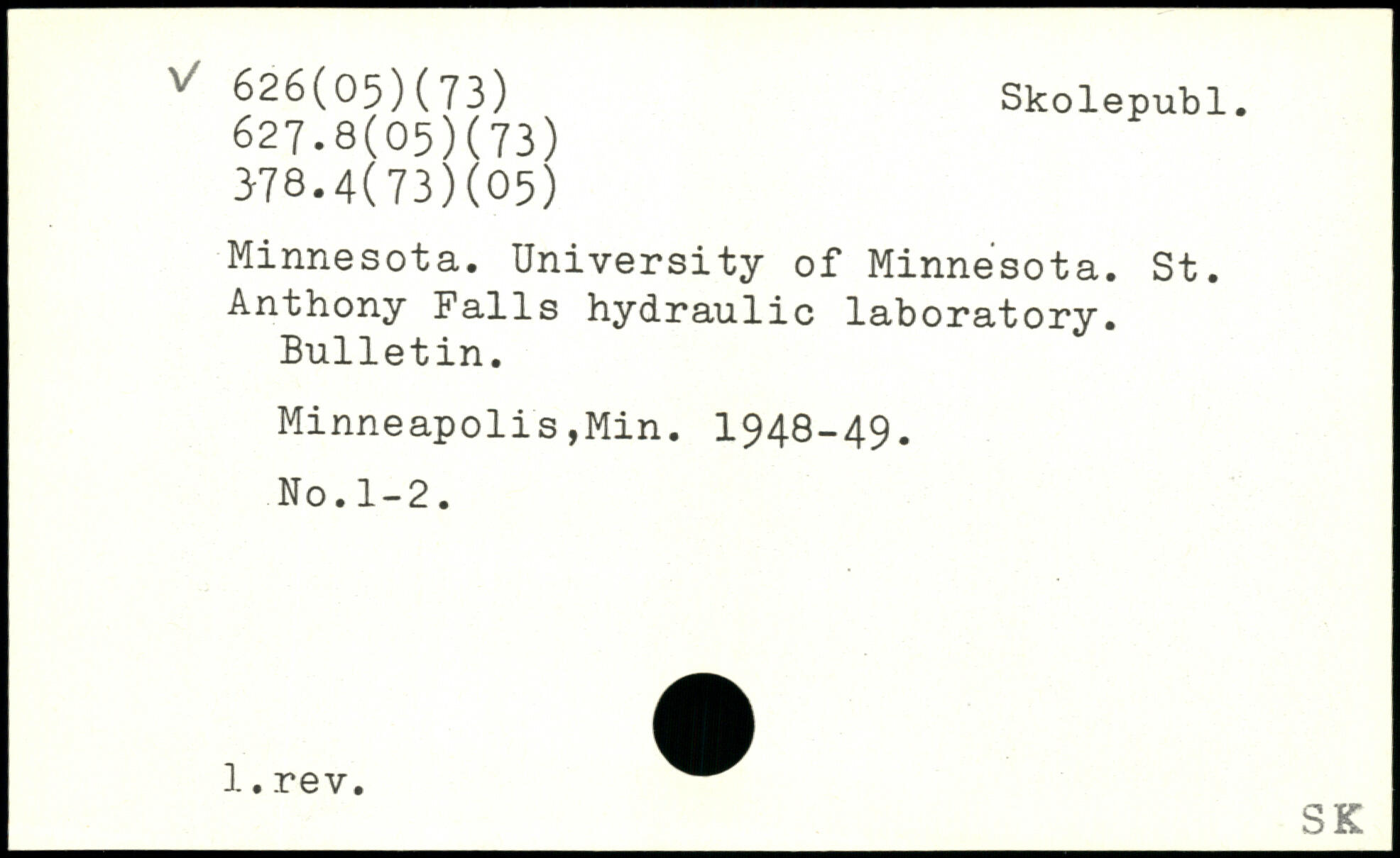 Minnesota. University of Minnesota. St. Anthony Falls hydraulic laboratory. Bulletin. Minneapolis,Min. 1948-49. No.1-2.