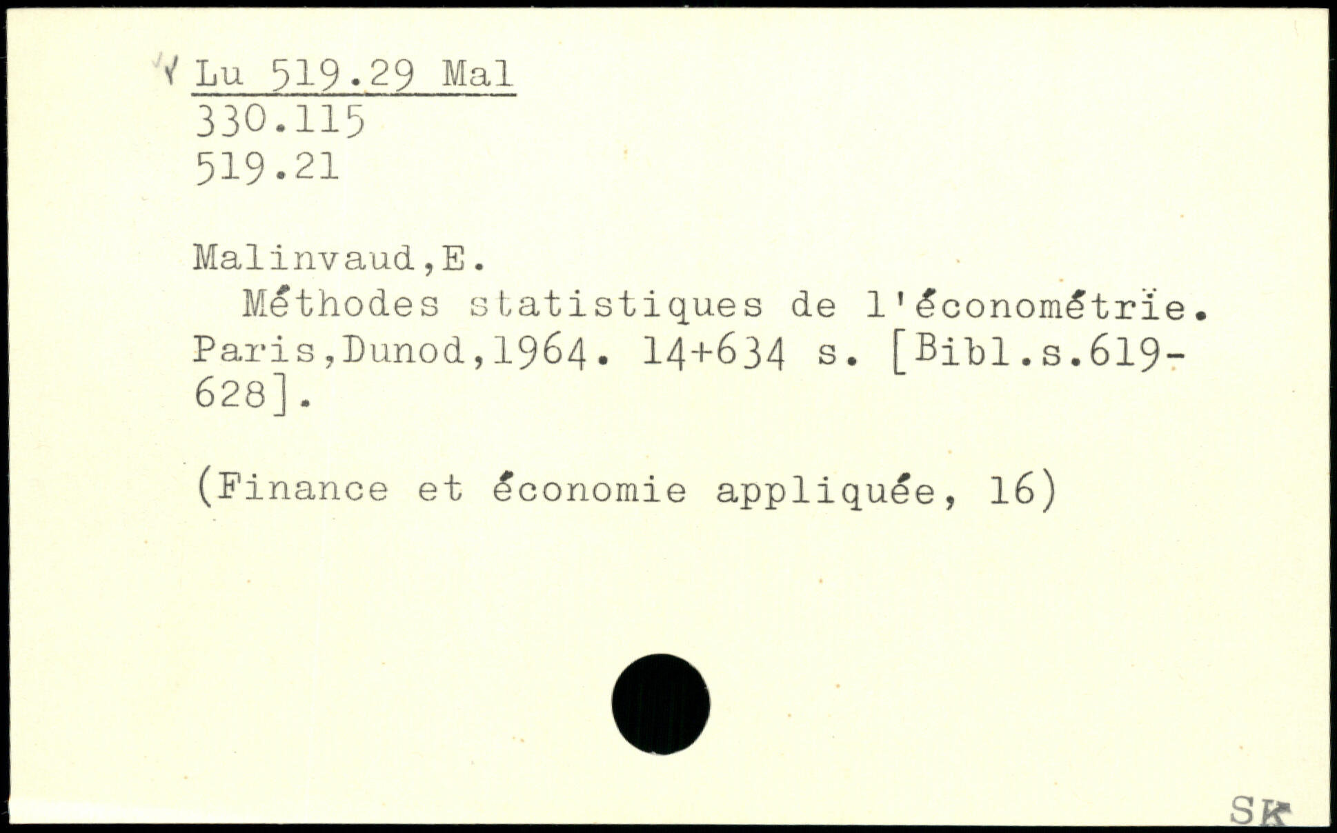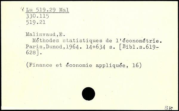 Malinvaud., E. Méthodes statistiques de 11économétrie.