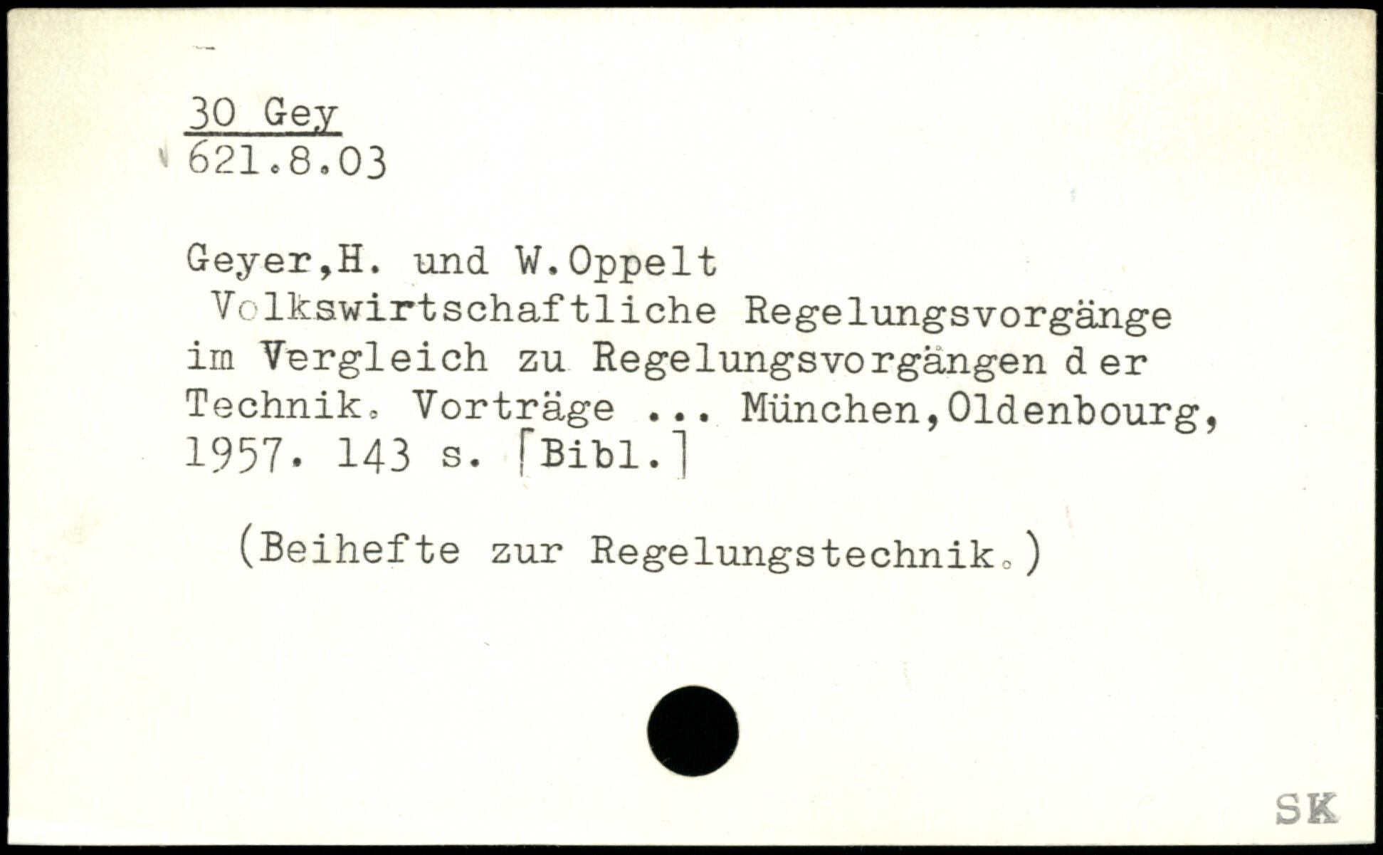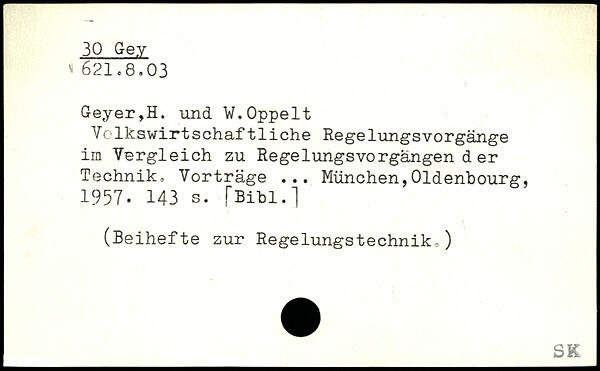 Geyer,H. und V.Oppelt Volkswirtschaftliche RegelungsVorgänge im Vergleich zu Regelungsvorgängen der Technik. Vorträge ...