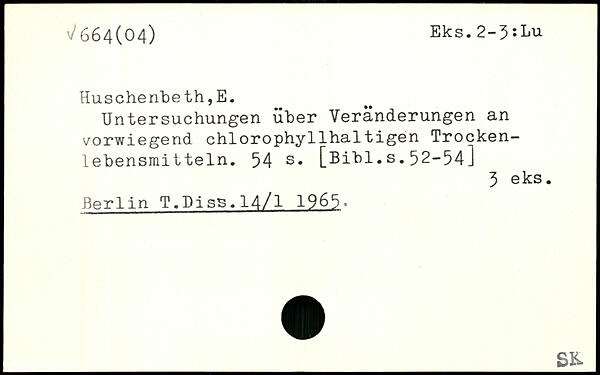 Untersuchungen über Veränderungen an vorwiegend chlorophyllhaltigen Trockenlebensmitteln.