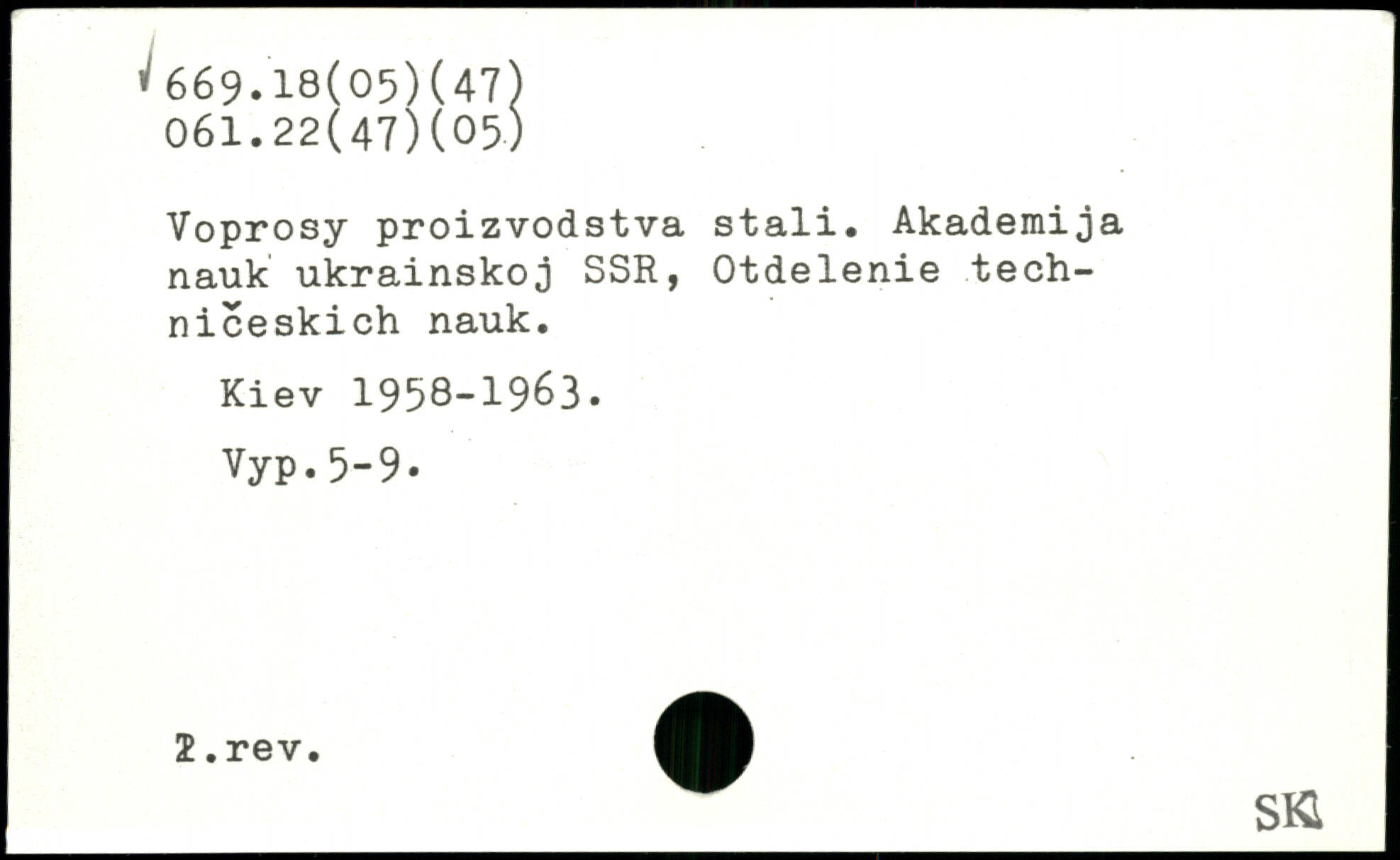 Voprosy proizvodstva stali. Akademija nauk ukrainskoj SSR, Otdelenie tech-niceskich nauk. Kiev 1958-1963. Vyp.5-9.