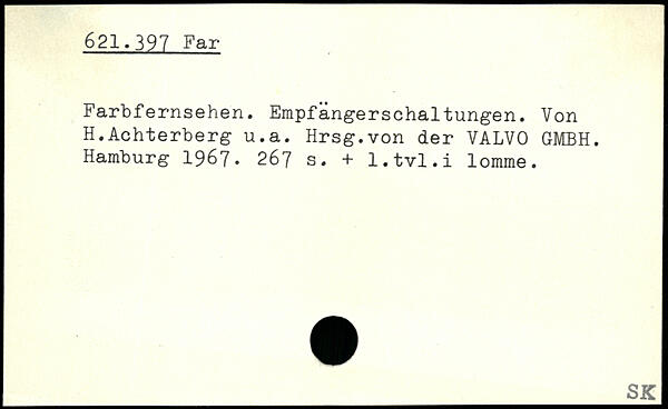 Farbfernsehen. Empfängerschaltungen. Von H.Achterberg u.a. Hrsg.von der VALVO GMBH.