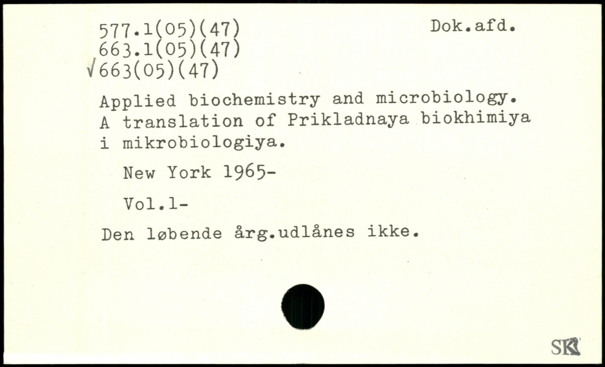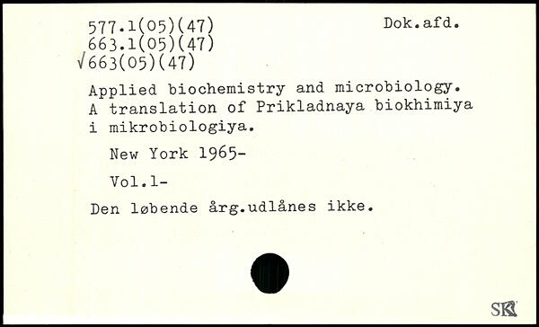Applied biochemistry and microbiology. A translation of Prikladnaya biokhimiya i mikrobiologiya.