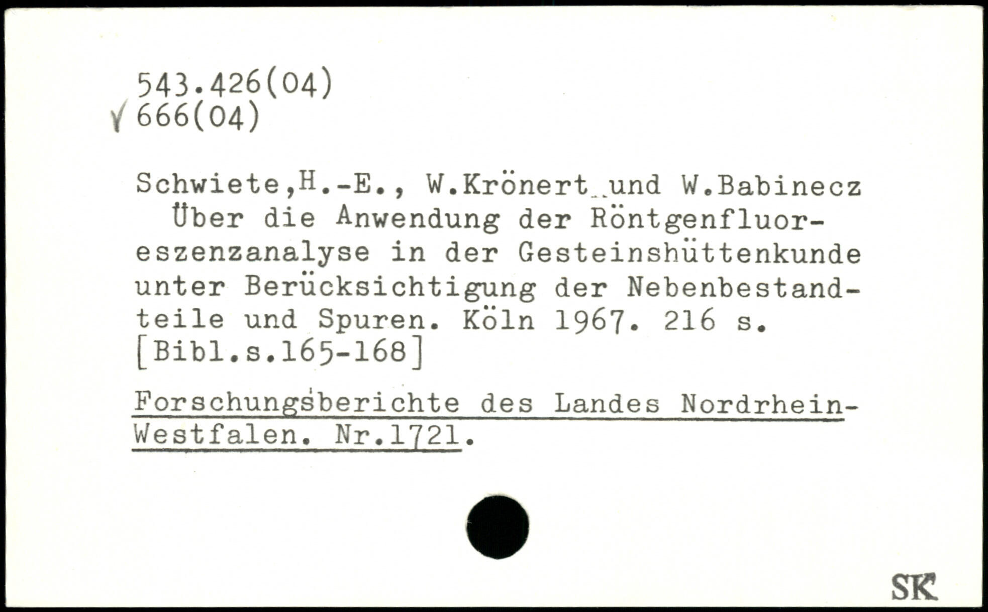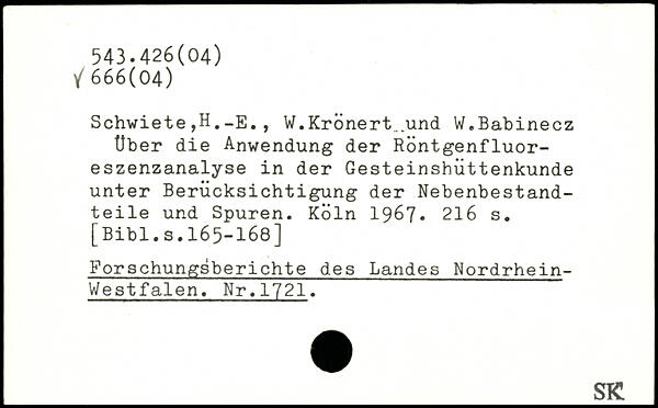 Schwiete,H._E., W.Krönert_und W.Babinecz Über die Anwendung der Röntgenfluoreszenzanalyse in der Gesteinshüttenkunde unter Berücksichtigung der Nebenbestandteile und Spuren.
