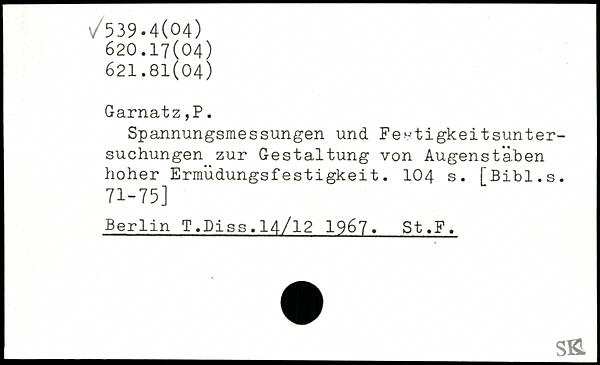 Spannungsmessungen und Festigkeitsuntersuchungen zur Gestaltung von Augenst'aben hoher Ermüdungsfestigkeit.
