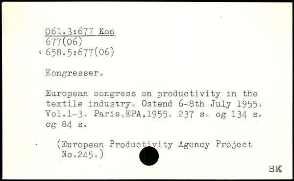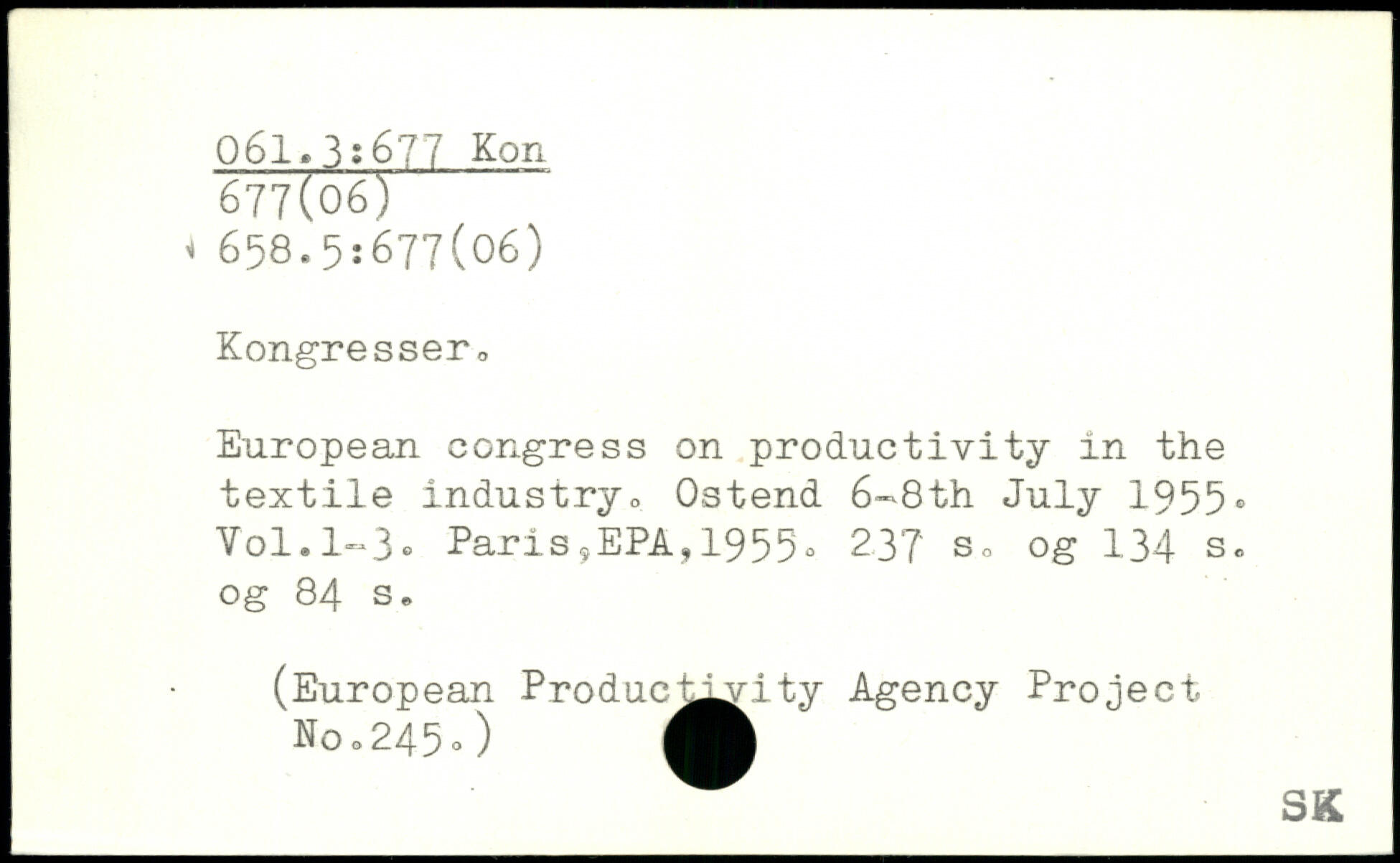 European congress on productivity in the textile industryo Ostend 6-8th July 1955
