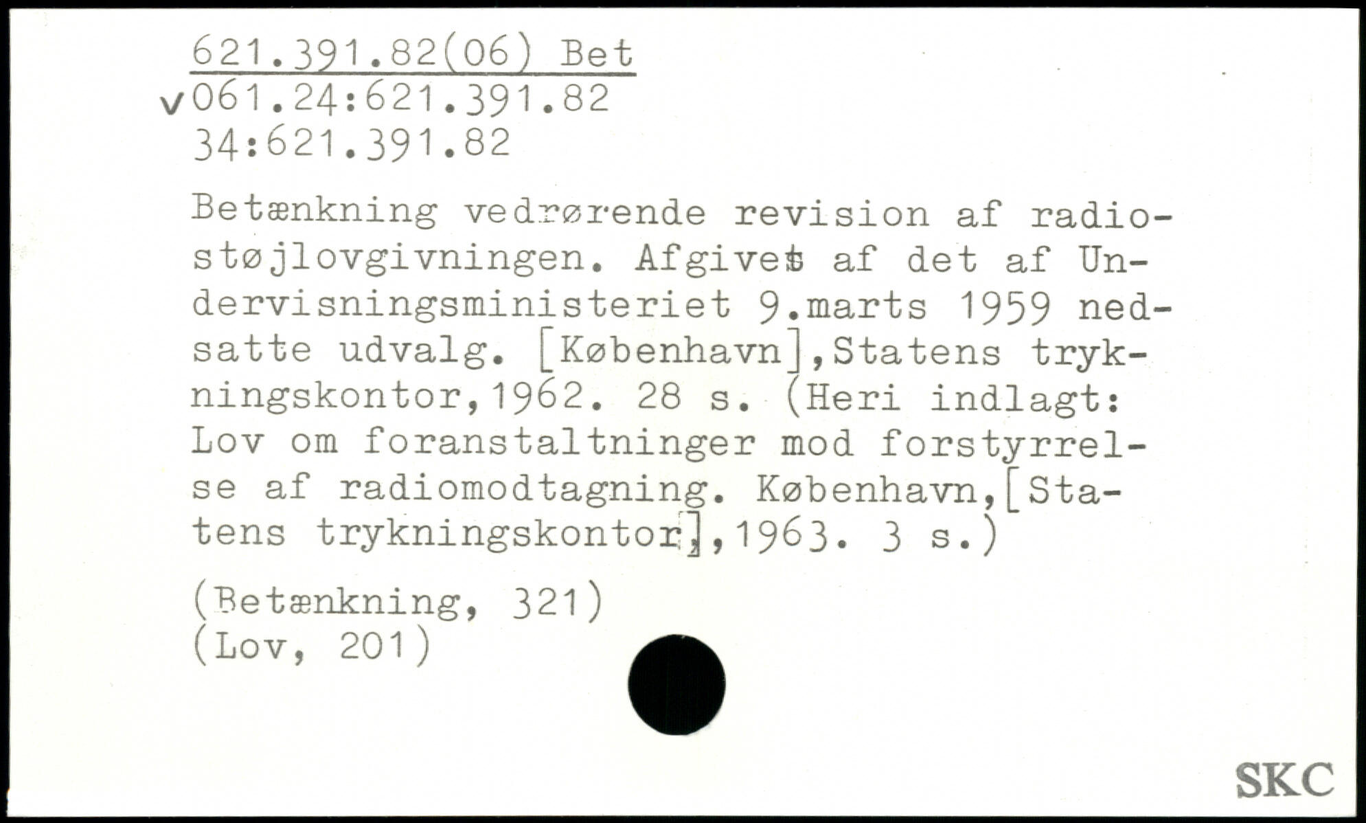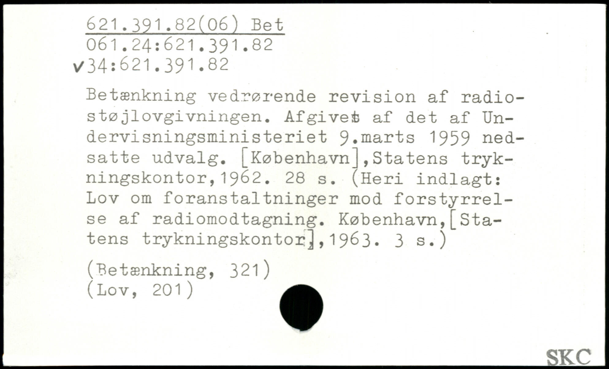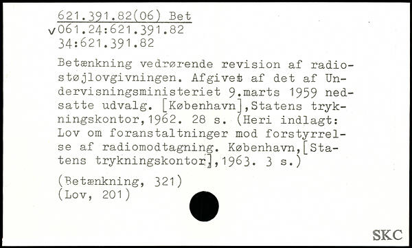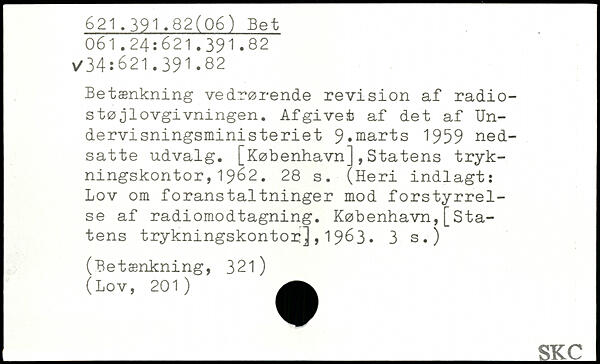 Betænkning vedrørende revision af radiostø jlovgivningen. Afgivet af det af Undervisningsministeriet 9.marts 1959 nedsatte udvalg.