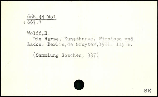 Die Harze, Kunstharze, Firnisse und Lacke, Berlin,de Gruyter,l$21