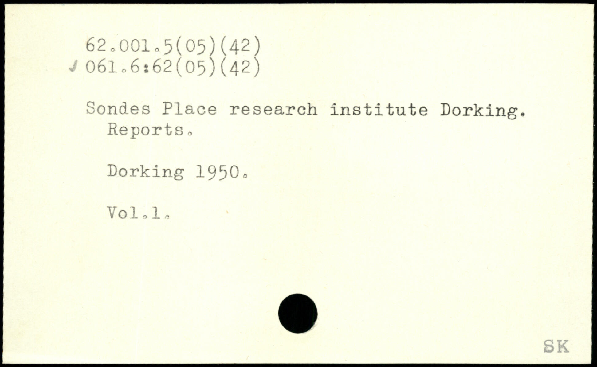 Sondes Place research institute Dorking. Reports, Dorking 1950o Vol,1