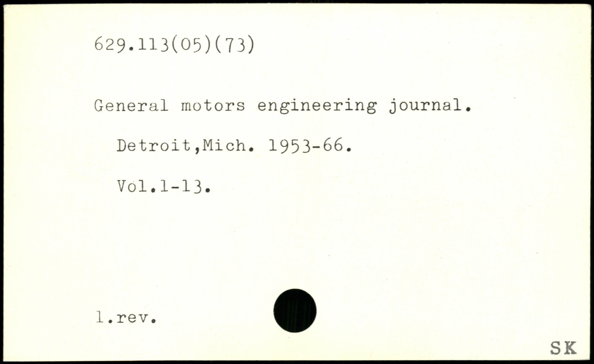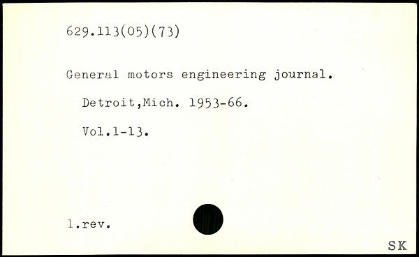General motors engineering journal. Detroit,Mich. 1953-66. Völ.1-13.