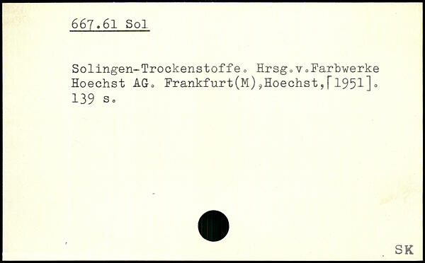 Solingen-Trockenstoffeo Hrsgov.Farbwerke Hoechst AG. Frankfurt(M)^Hoechst,f1951]