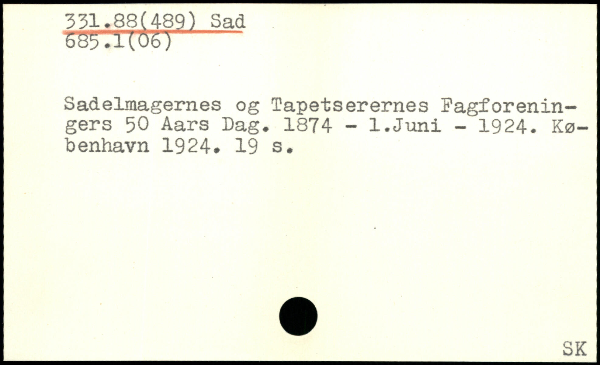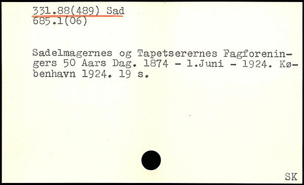Sadelmagernes og Tapetserernes Fagforeningers 50 Aars Dag. 1874 - l.Juni - 1924.