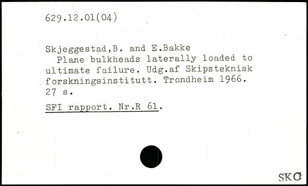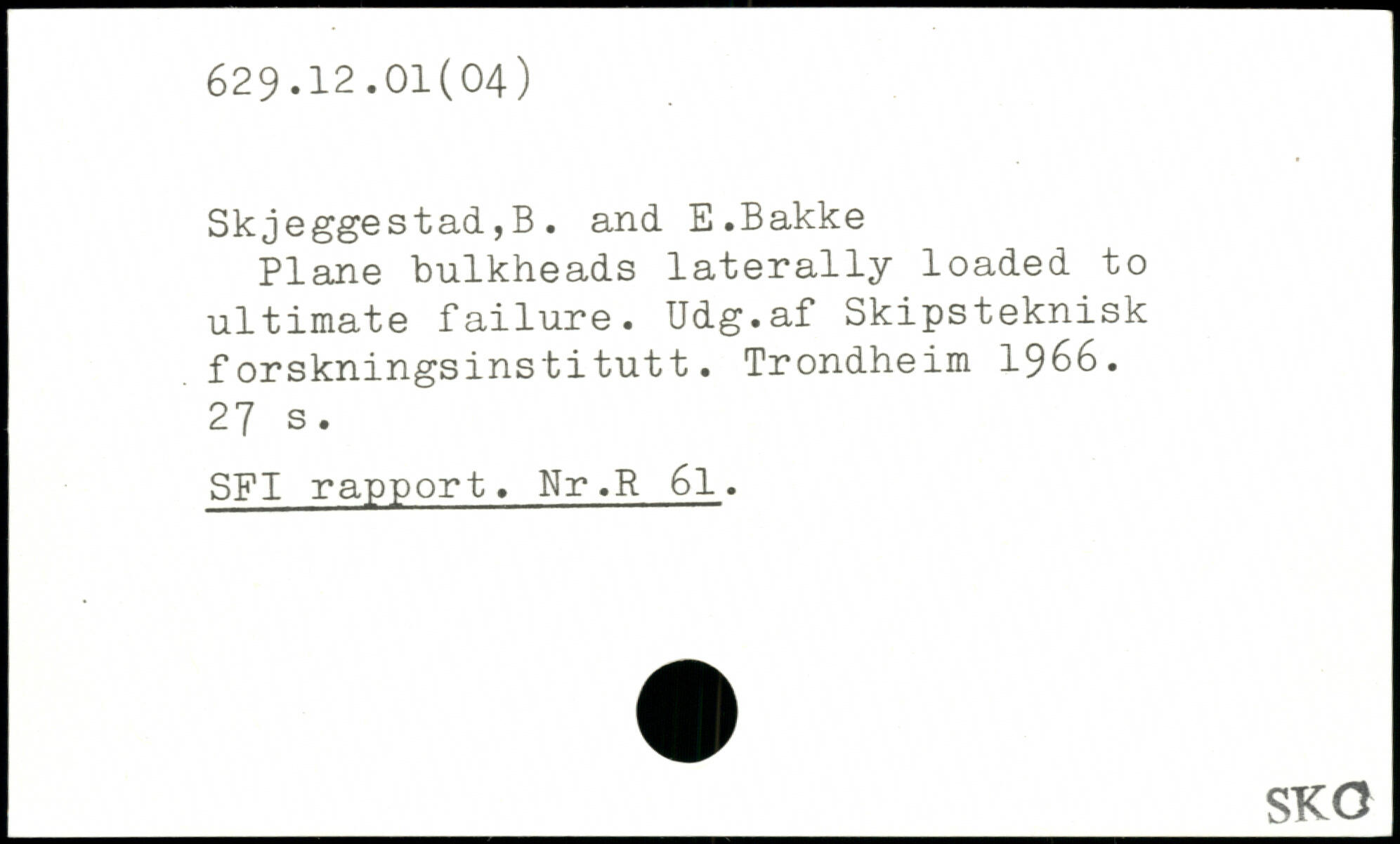 Plane bulkheads laterally loaded to ultimate failure. Udg.af Skipsteknisk forskningsinstitutt.