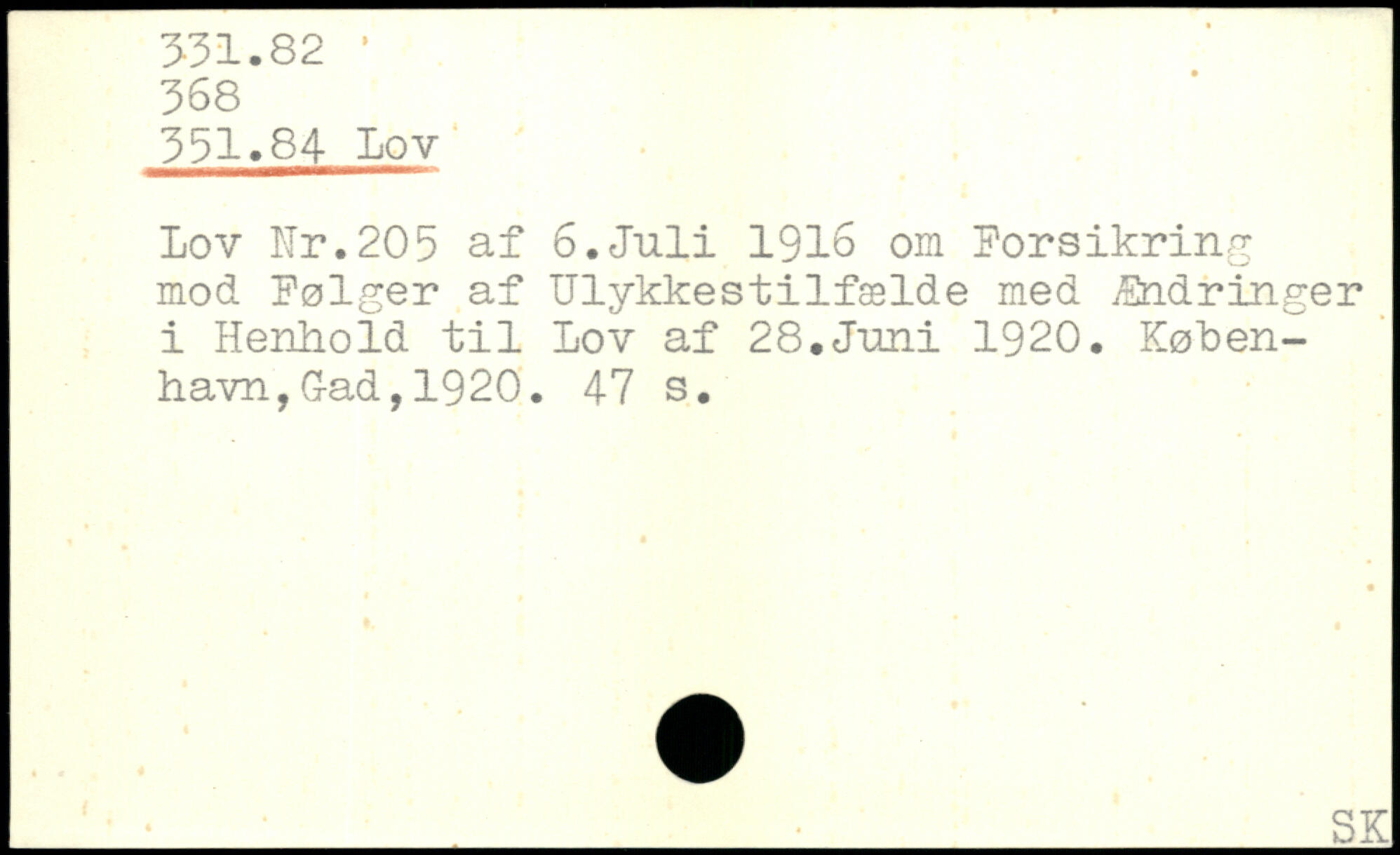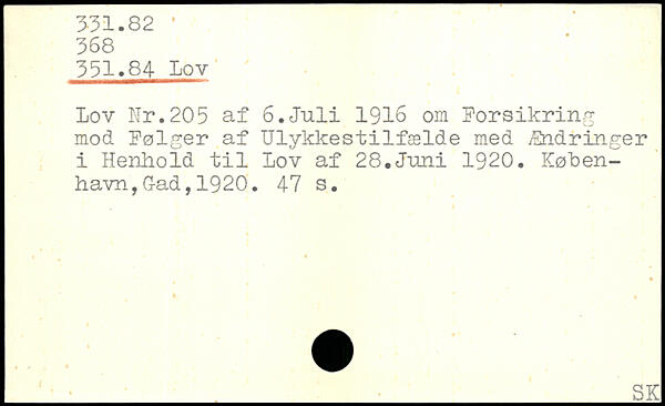 Lov Kr.205 af 6.Juli 1916 om Forsikring mod Følger af Ulykkestilfælde med Ændringer i Henhold til Lov af 28.Juni 1920.
