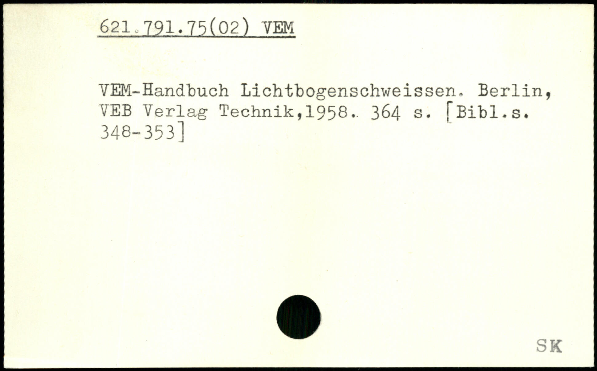VEM-Handbuch Lichtbogenschweissen, Berlin, VEB Verlag Technik,1958. 364 s. [Bibl.s. 348-353]