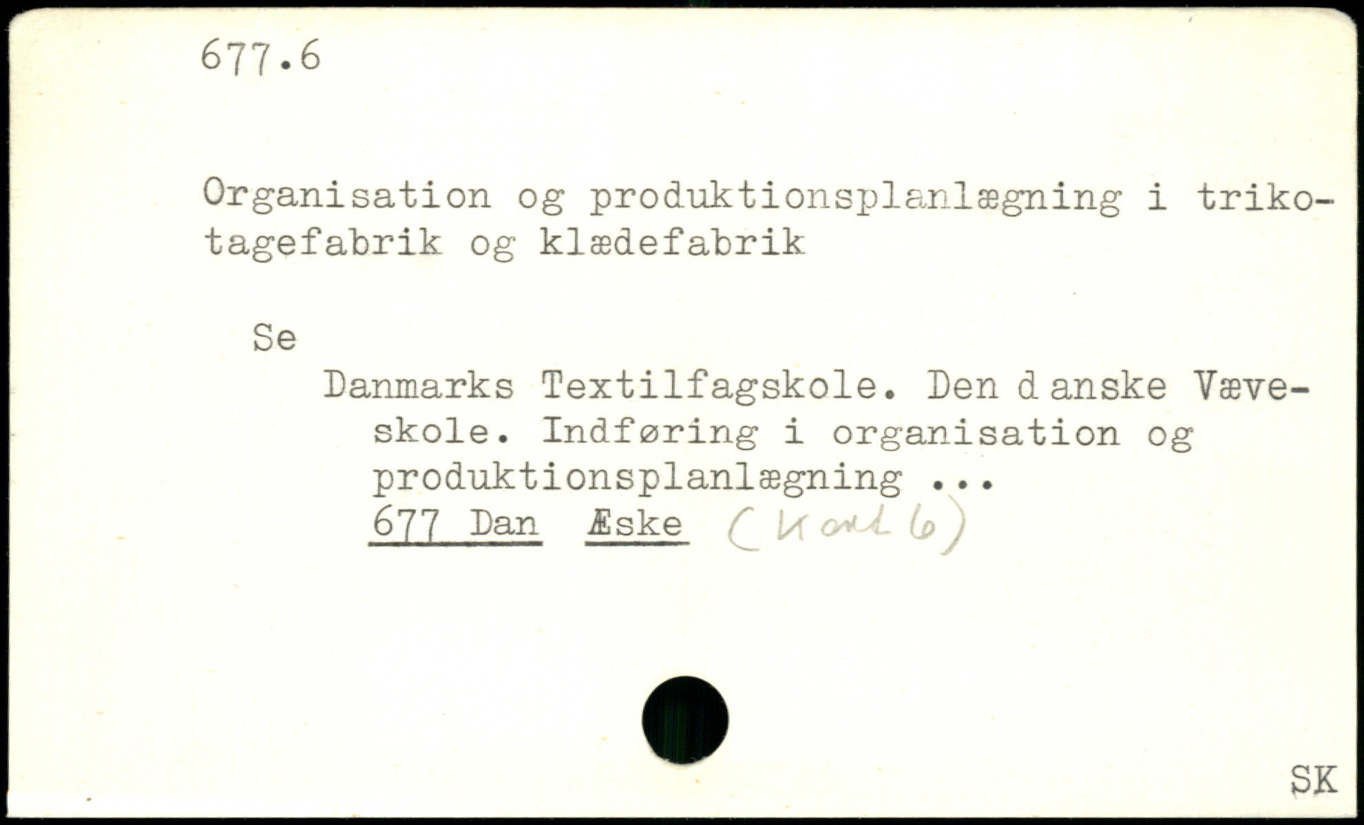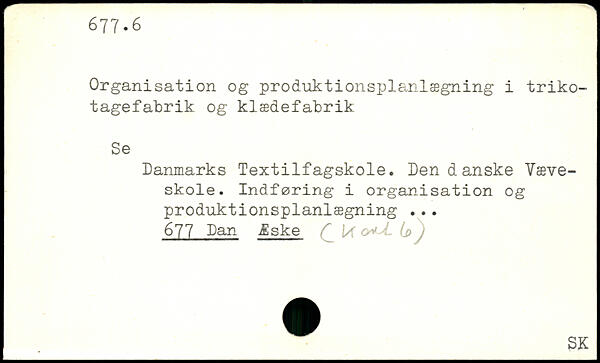 Organisation og produktionsplanlægning i trikotagefabrik og klædefabrik Se Danmarks Textilfagskole. Den danske Væve-skole. Indføring i organisation og produktionsplanlægning ... 677 Dan Æske ' U o. 7 b