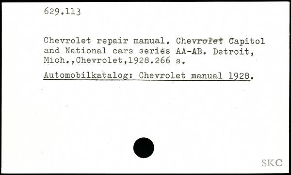 Chevrolet repair manual. Chevrolet Capitol and National cars series AA-AB.