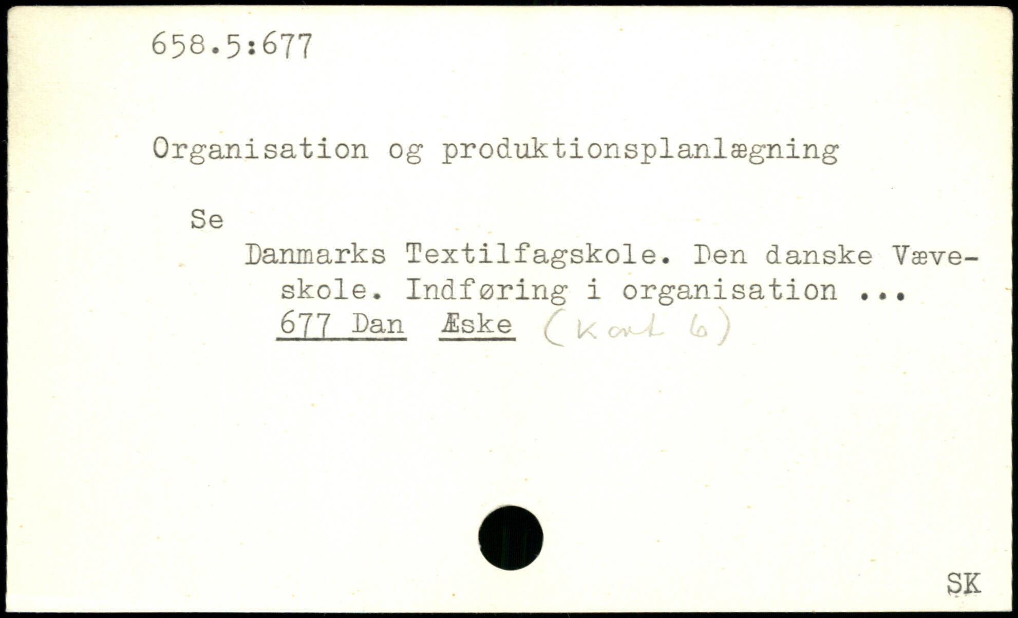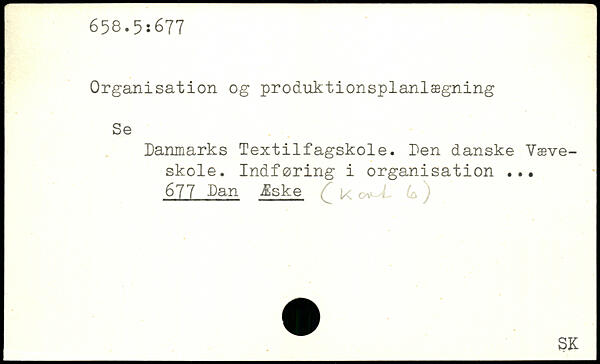 Organisation og produktionsplanlægning Se Danmarks Textilfagskole. Den danske Væveskole. Indføring i organisation 677 Dan Æske ^ [< o^L U )