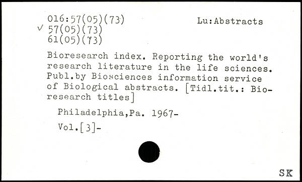 UDK: 016:57(05)(73), 57(05)(73), 61(05)(73)