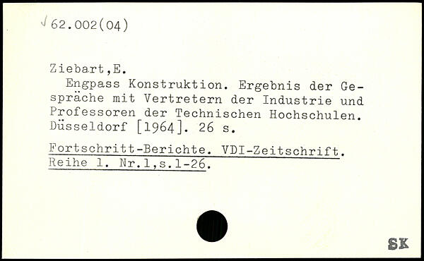 Engpass Konstruktion. Ergebnis der Gespräche mit Vertretern der Industrie und Professoren der Technischen Hochschulen. Düsseldorf