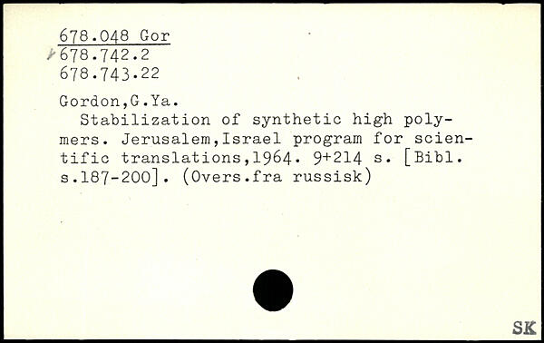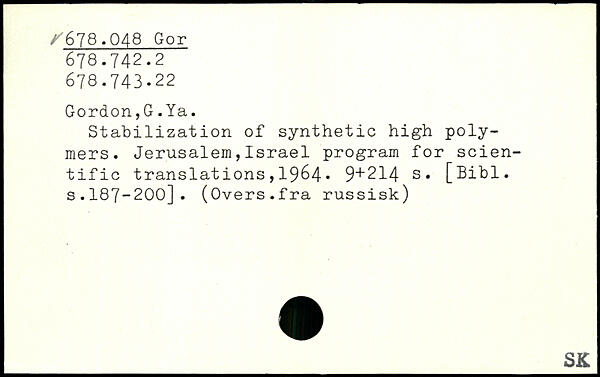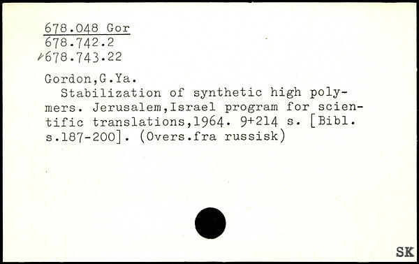 Gordon,G.Ya. Stabilization of synthetic high polymers. Jerusalem,Israel program for scientific translations,1964.