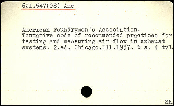 American Foundrymen’s Association. Tentative code of recommended practices for testing and measuring air flow in exhaust systems.