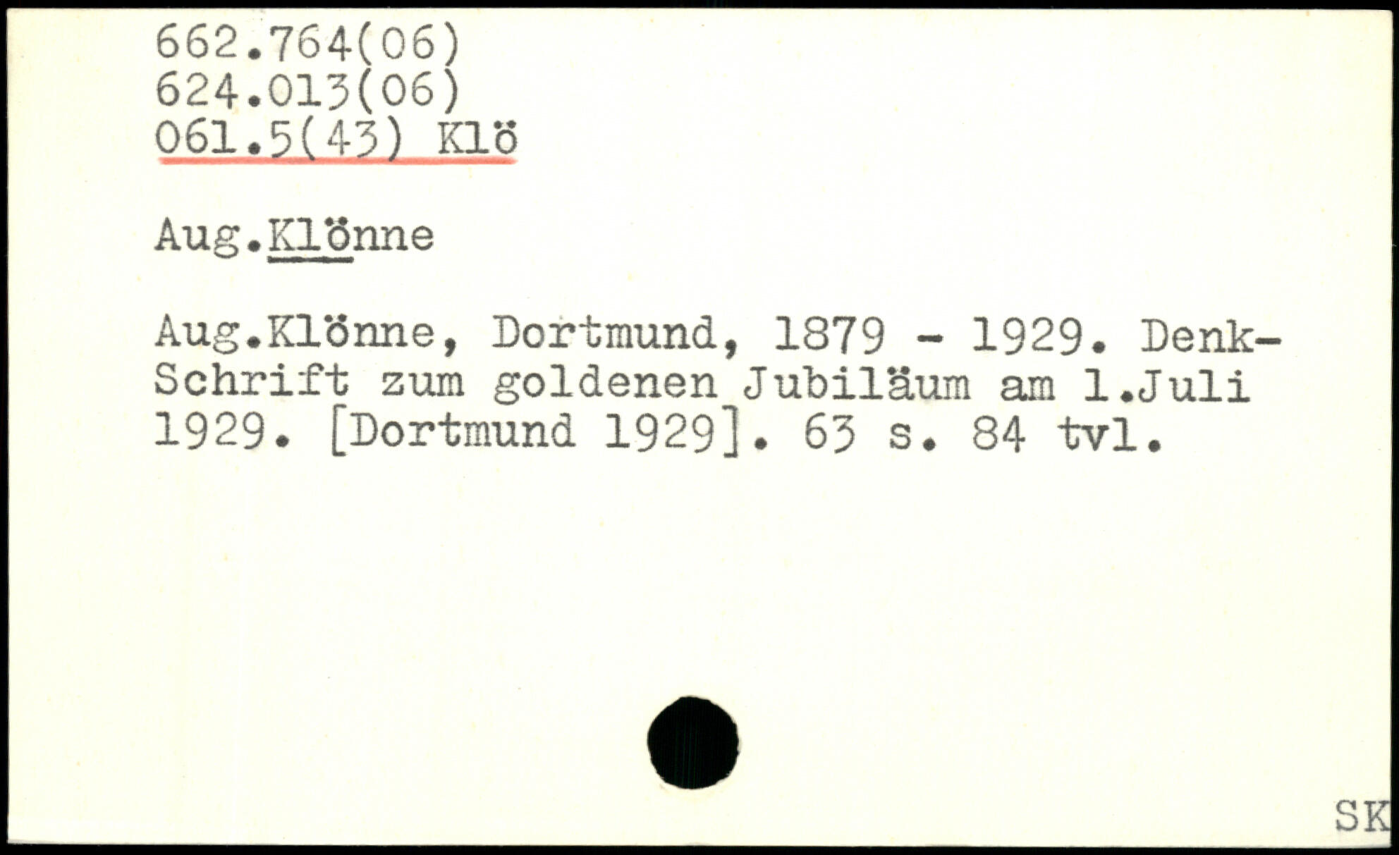 Aug.Kl <3nne Aug.Klc5nne, Dortmund, 1879 - 1929. Denkschrift zum goldenen Jubiläum am l.Juli 1929. [Dortmund 1929].