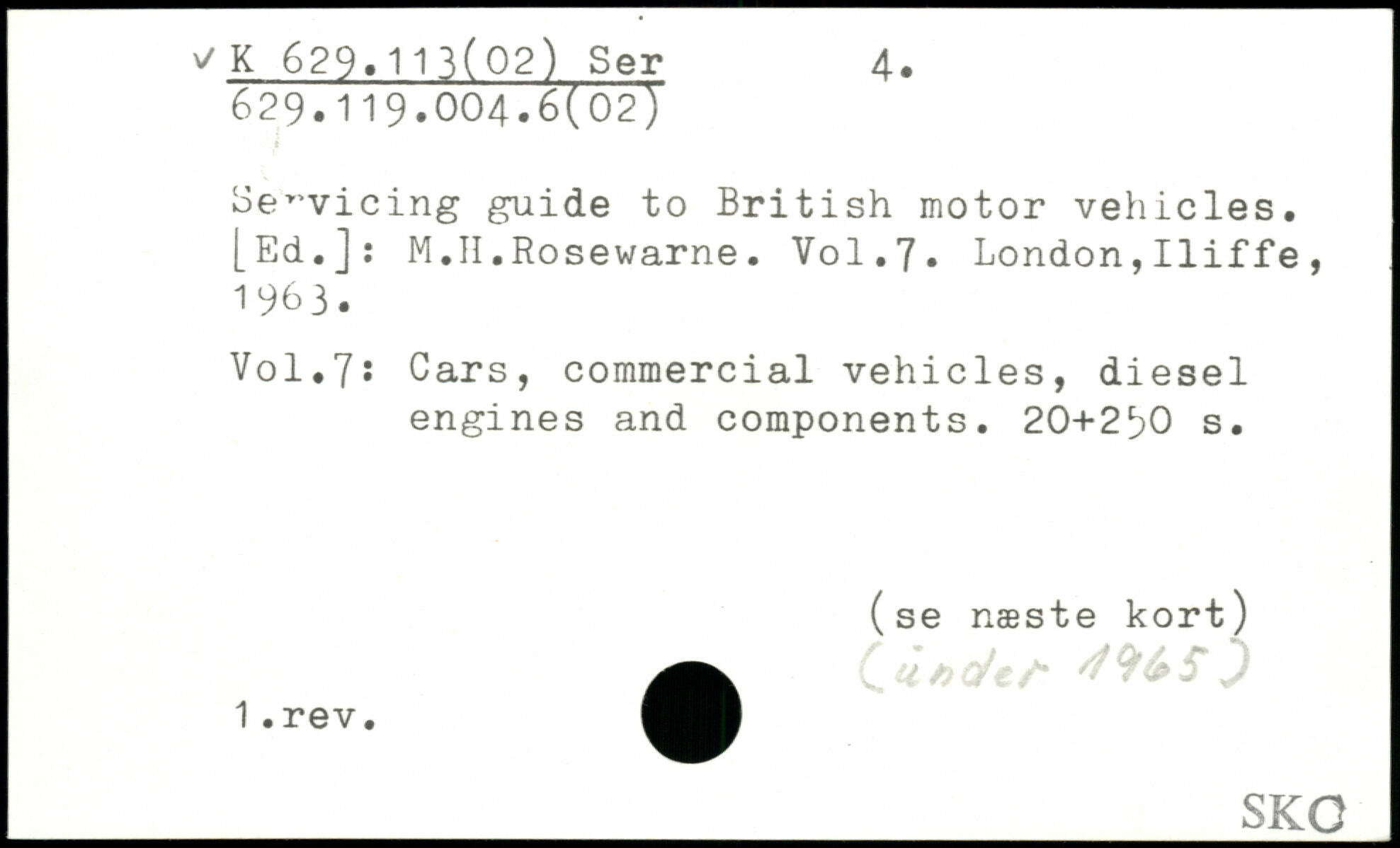 Servicing guide to British motor vehicles. [Ed.Jî M.H.Rosewarne. V0I.7.