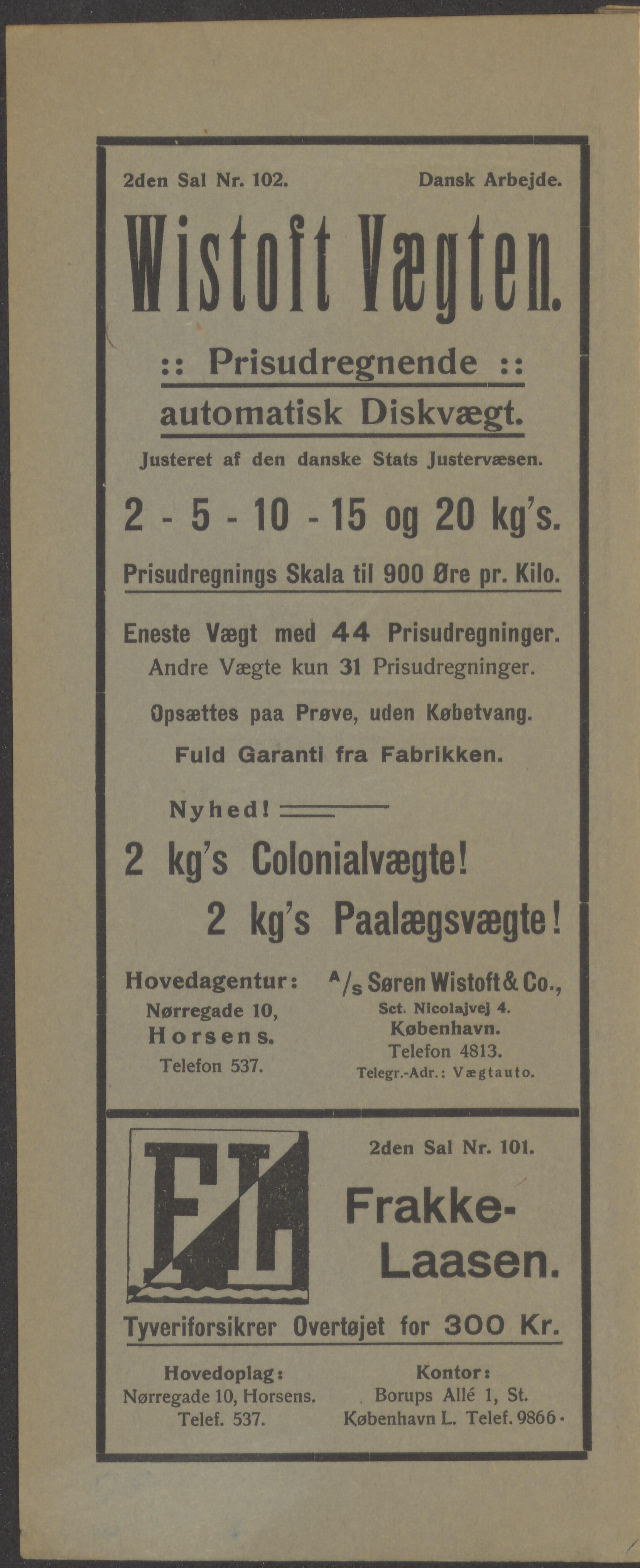 Hovedagentur: A/s Søren Wistoft& Co.,