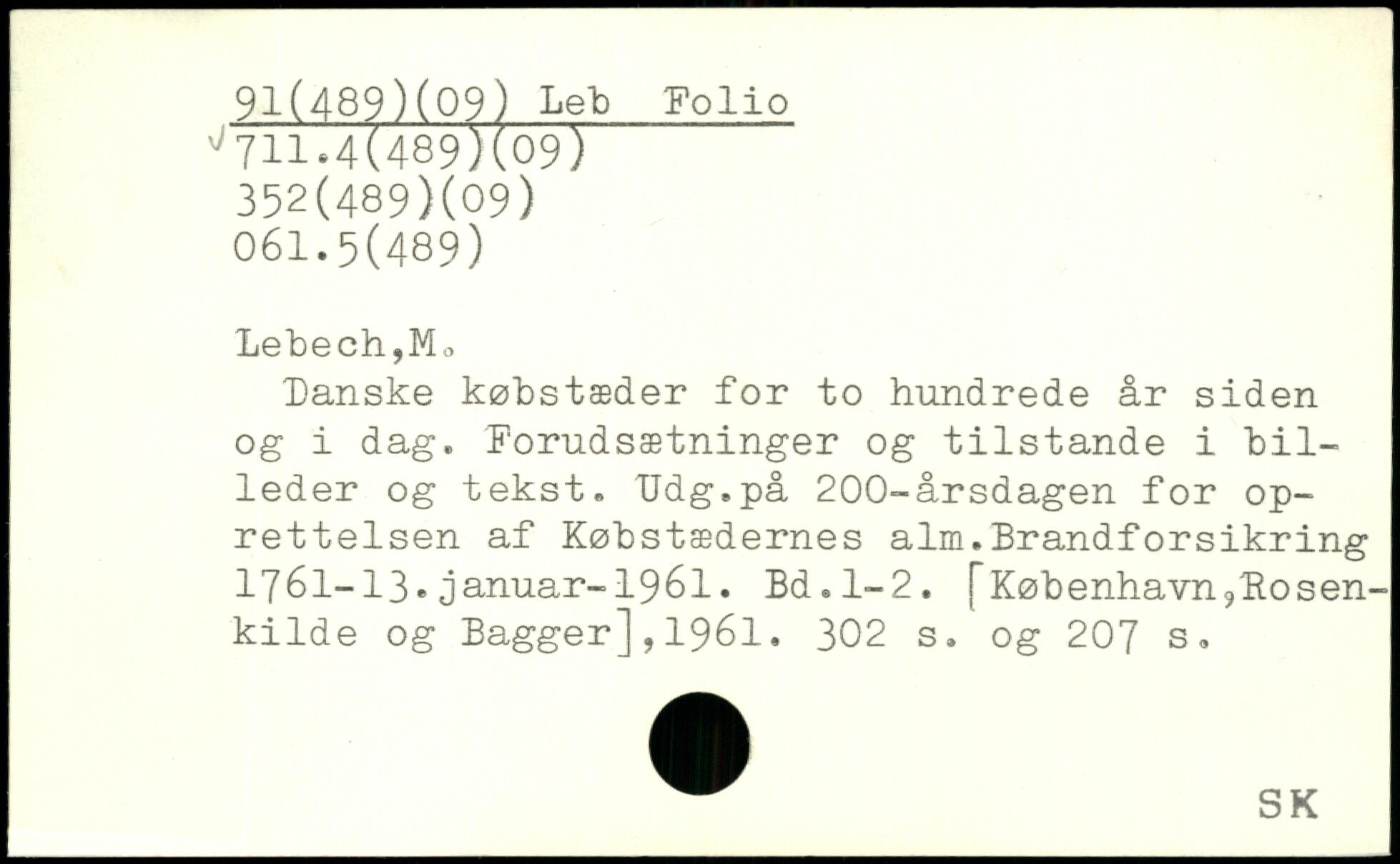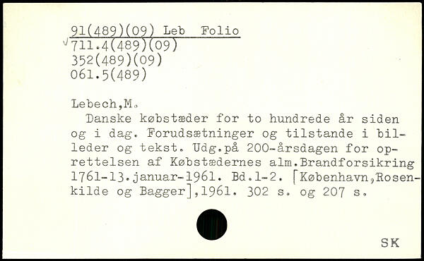 Danske købstæder for to hundrede år siden og i dag. Forudsætninger og tilstande i billeder og tekst. Ddg.på 200-årsdagen for oprettelsen af Købstædernes alm.Brandforsikring 1761-13.januar-1961.