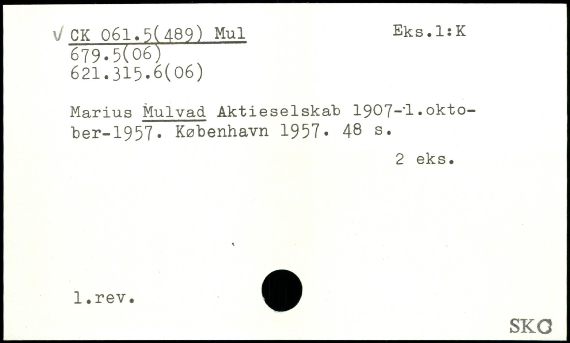 Marius Mulvad. Aktieselskab 1907~'l.okto- ber-1957.