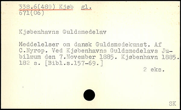 Kjøbenhavns G-uld smede lav Meddelelser om dansk Guldsmedekunst. Af C.Nyrop. Ved Kjøbenhavns Guldsmedelavs Jubilæum den 7.November 1885. Kjøbenhavn 1885-