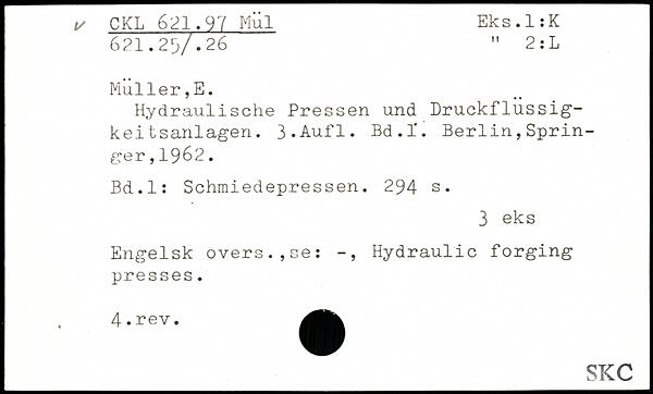 Hydraulische Pressen und Druckflussig-keitsanlagen.