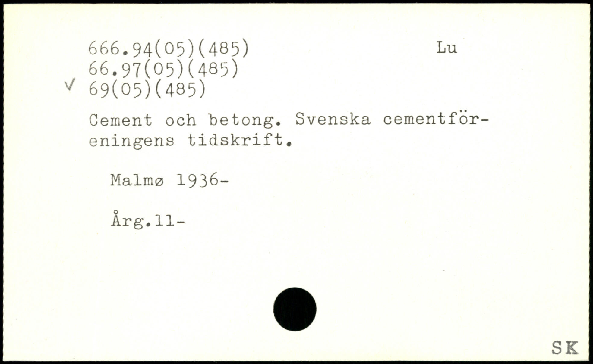 Cement och betong. Svenska cementföreningens tidskrift. Malmo 1936- Årg.11-