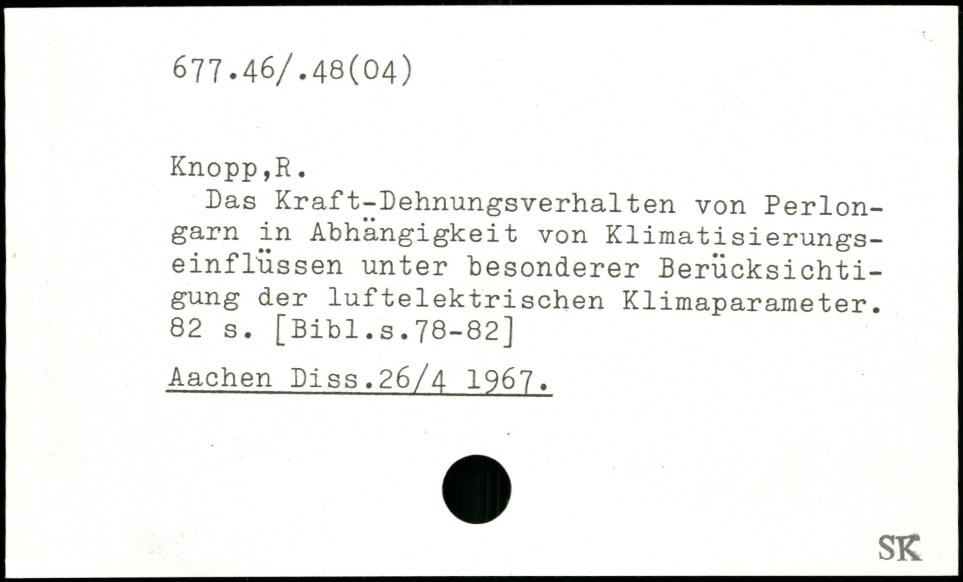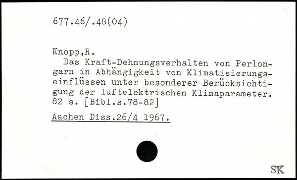 Ras Kraft-Rehnungsverhalten von Perlongarn in Abhängigkeit von Klimatisierungseinflüssen unter besonderer Berücksichtigung der luftelektrischen Klimaparameter.