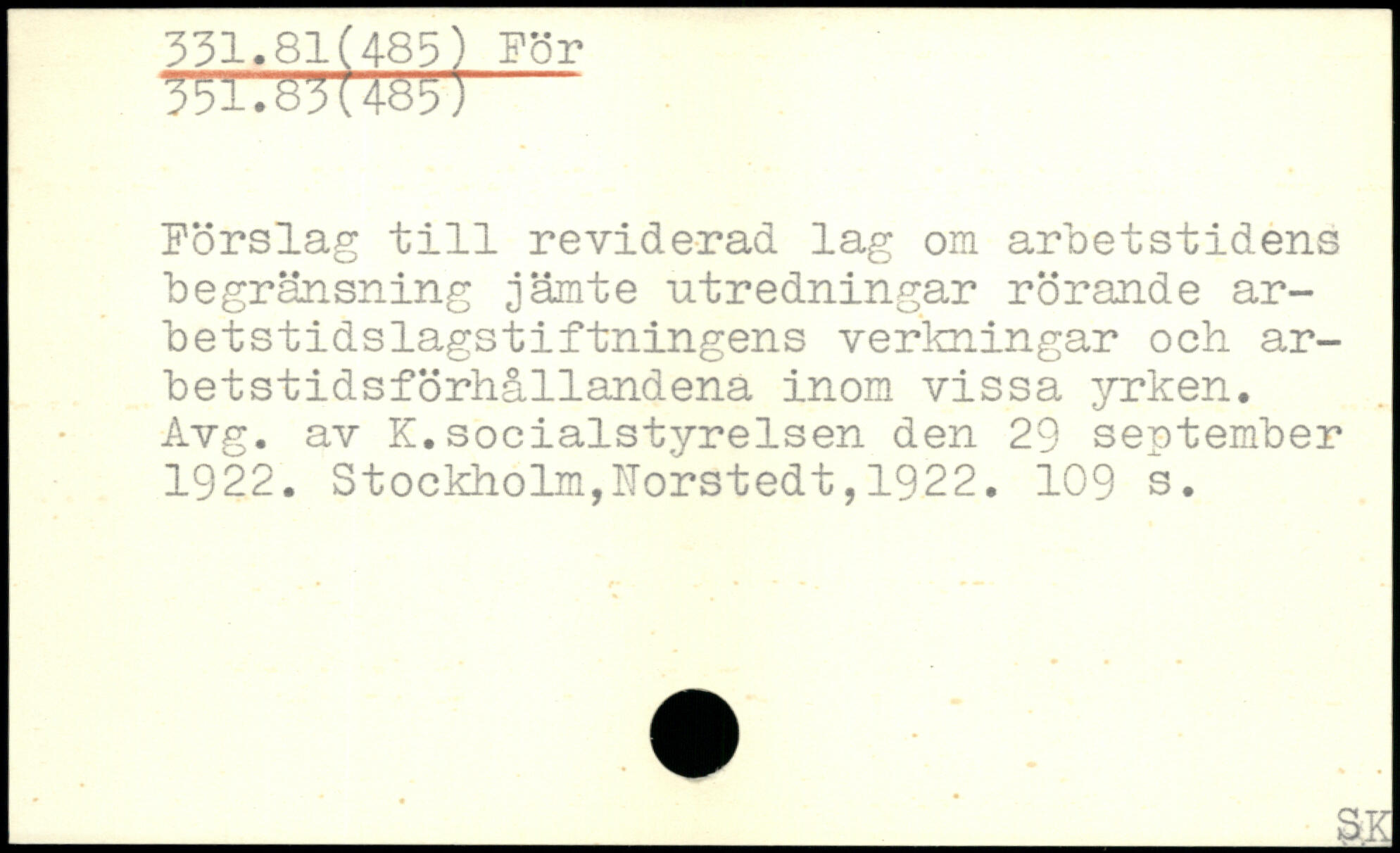 Förslag till reviderad lag om arbetstidens begränsning jämte utredningar rörande ar-betstidslagstiftningens verkningar och ar-betstidsförhållandena inom vissa yrken. Avg. av K.socialstyrelsen den