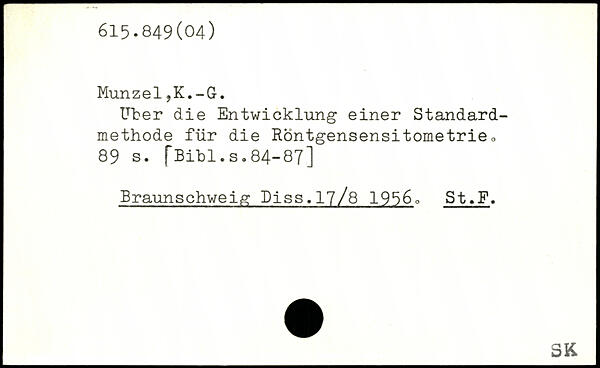 Tiber die Entwicklung einer Standardmethode für die Röntgensensitometrie<>