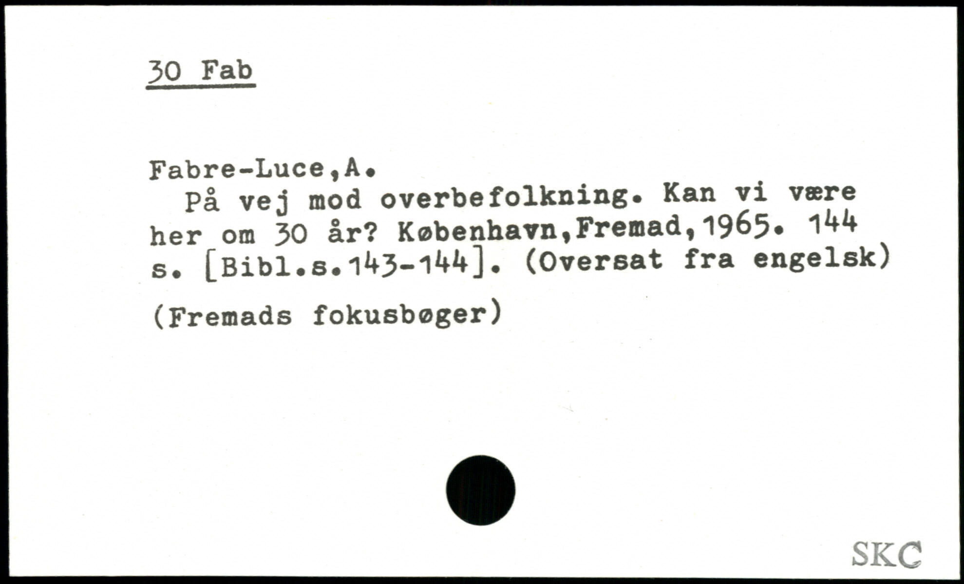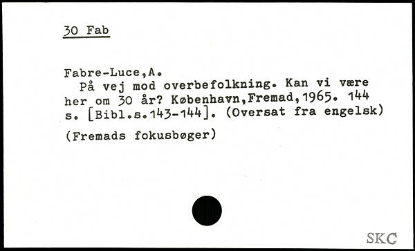 Fabre-Luce,A, på vej mod overbefolkning, Kan vi være her om 30 år?