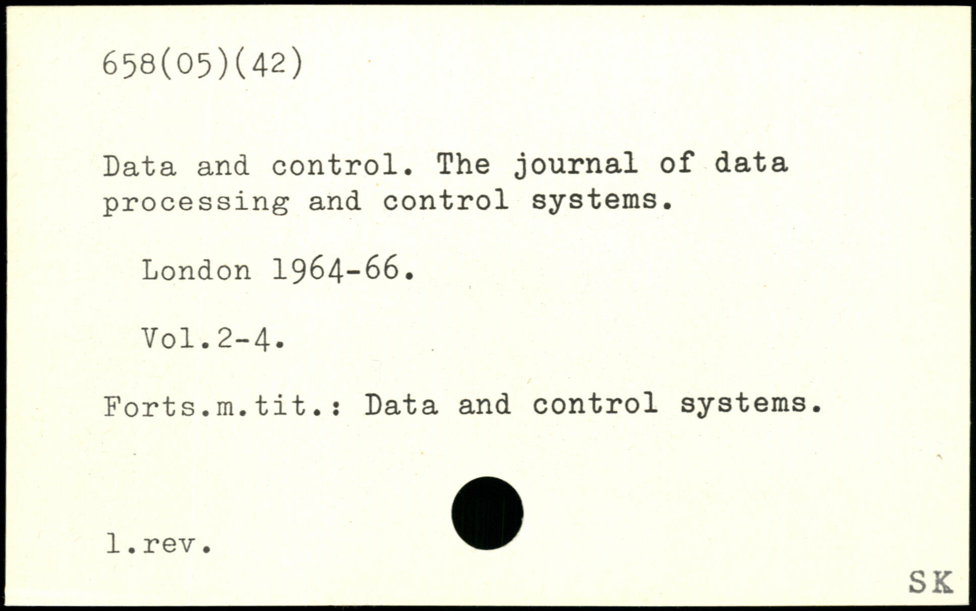 Data and control. The journal of data processing and control systems.