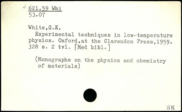 Experimental techniques in low-temperature physics, Oxford,at the Clarendon Press,1959.