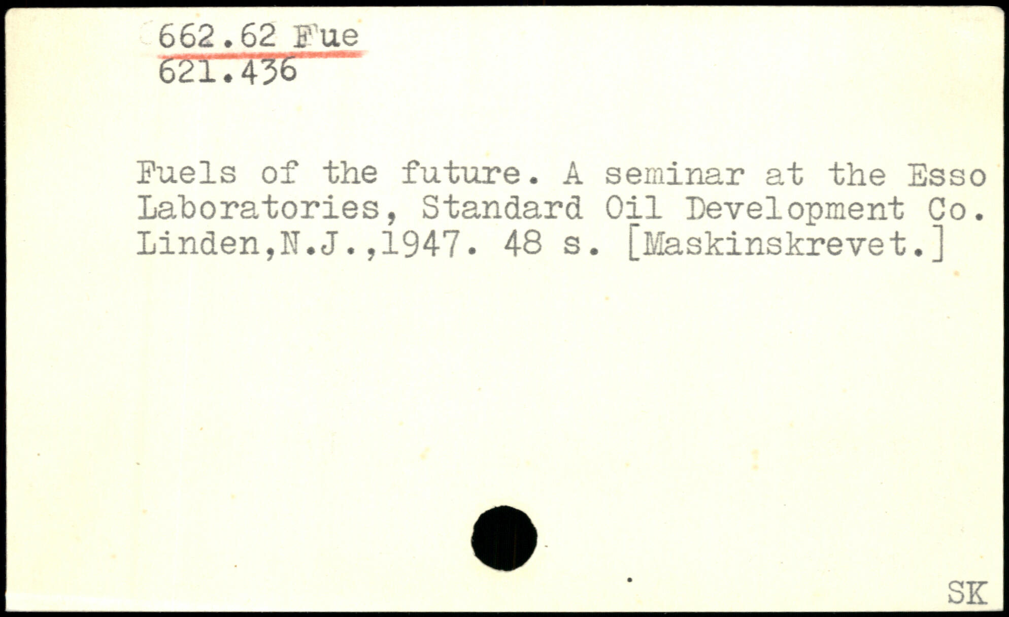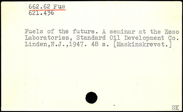 Fuels of the future. A seminar at the Esso Laboratories, Standard Oil Development Go.