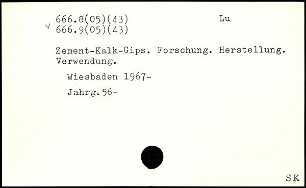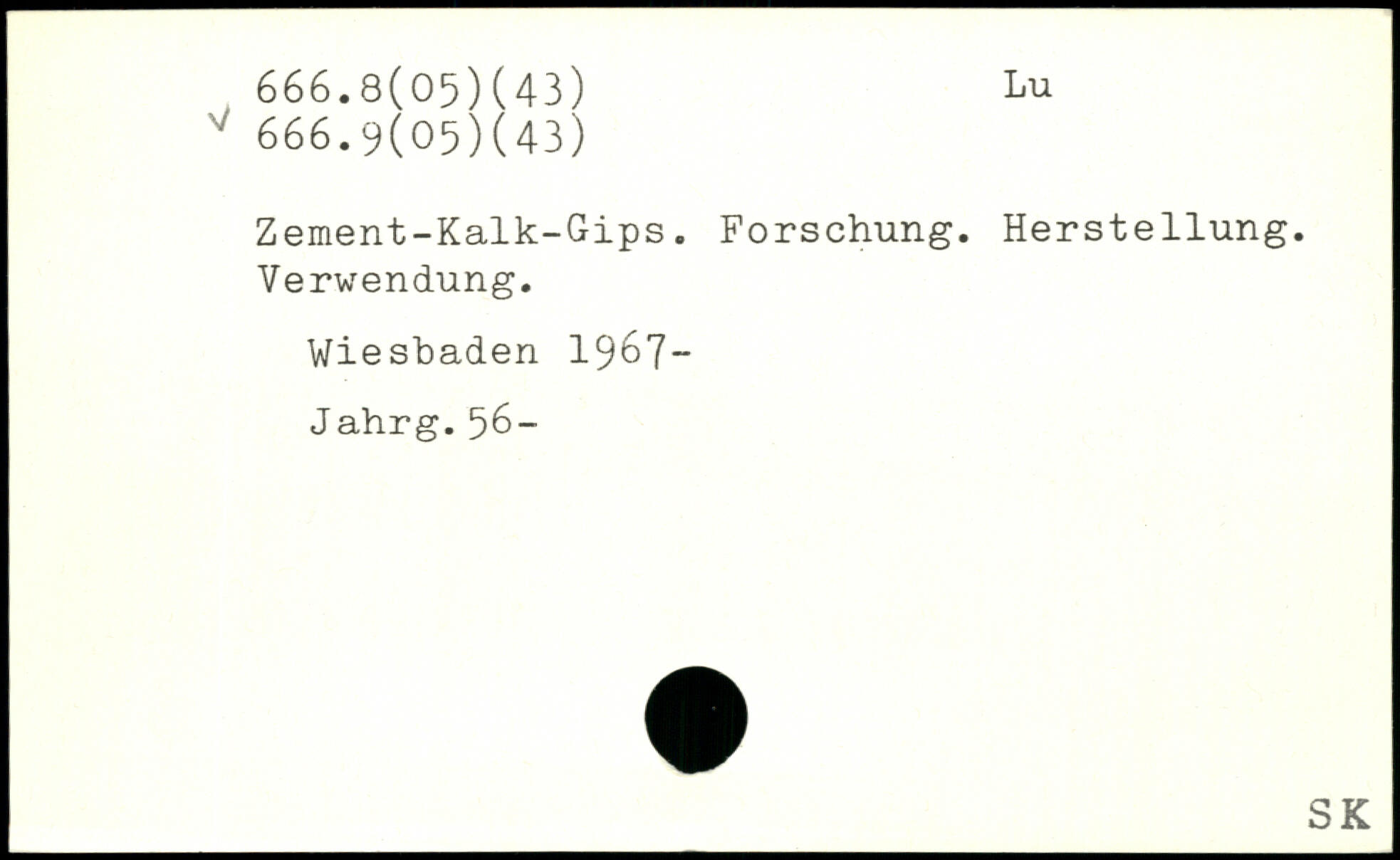 Zement-Kalk-Gips. Forschung. Herstellung. Verwendung. Wiesbaden 1967- J ahrg.56-
