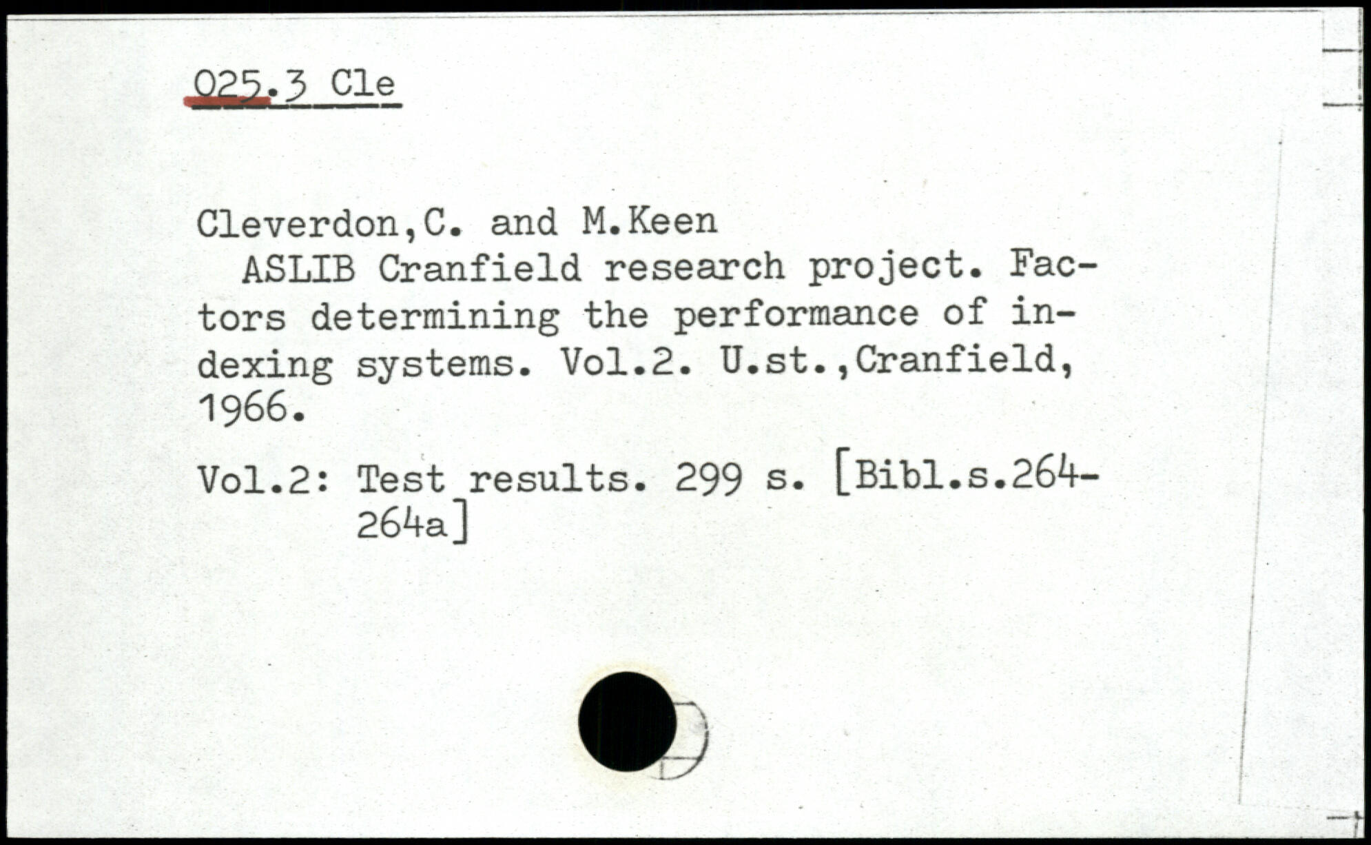 Forfatter: C. Cleverdon, M. Keen