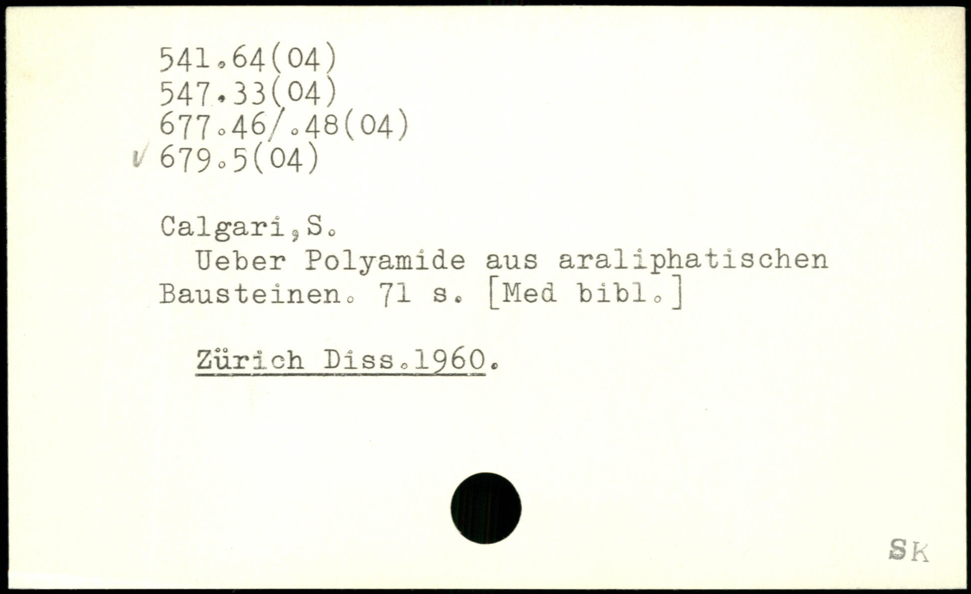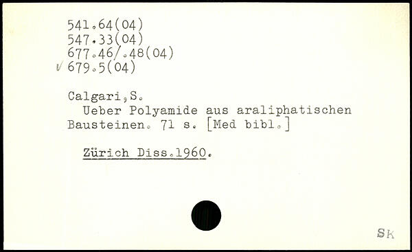 Calgari ?So Ueber Polyamide aus araliphatischen Bausteinen^ 'Jl s. [Med bibio] Zürich Disso1960