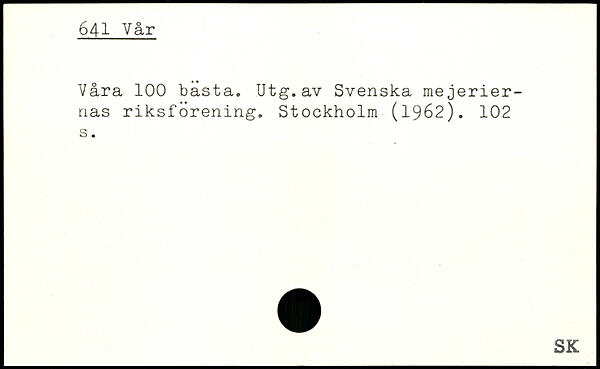 Våra 100 basta. Utg. av Svenska mejeriernas riksforening. Stockholm (1962).