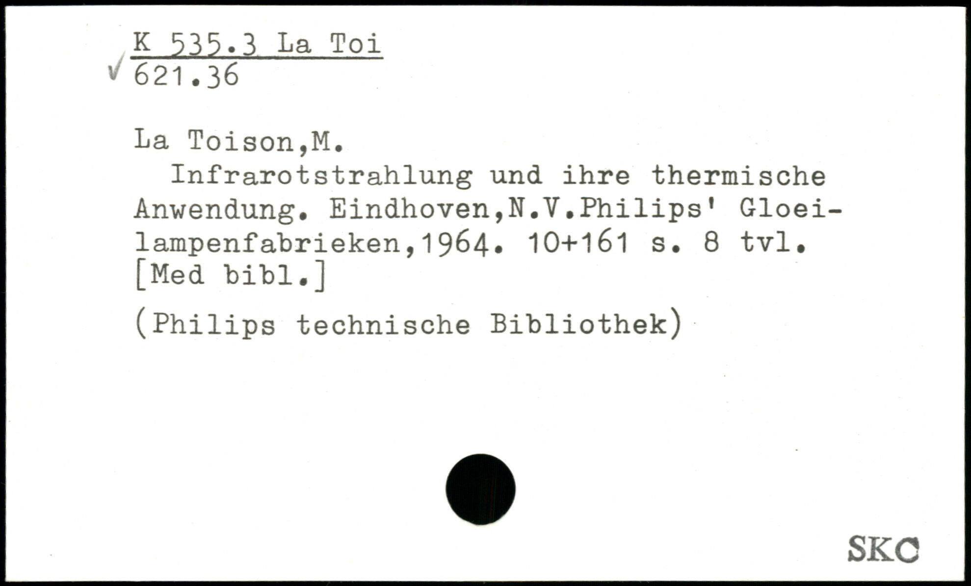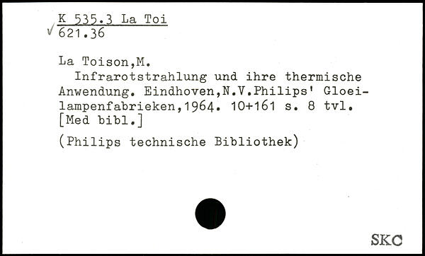 Infrarotstrahlung und ihre thermische Anwendung. Eindhoven,N.Y.Philips’ Gloei-lampenfabrieken,1964