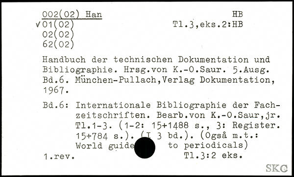 Handbuch der technischen Dokumentation und Bibliographie. Hrsg.von K.-O.Saur. 5.Ausg.