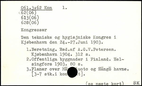 Den tekniske og hygiejniske Kongres i Kjøhenhavn den 24,~27.Jnni 1903, loBeretning. Hed.af A.GoVoPetersen,, Kjøhenhavn 1904.