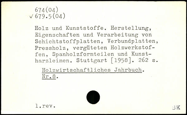 Holz und Kunststoffe. Herstellung, Eigenschaften und Verarbeitung von Schichtstoffplatten, Verbundplatten, Pressholz, vergüteten Holzwerkstoffen, Spanholzformteilen und Kunstharzleimen. Stuttgart
