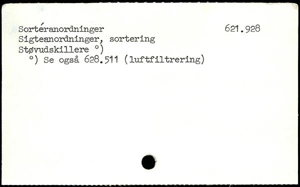Sigteanordninger, sortering Støvudskillere .) .) Se også 628.511 (luftfiltrering)